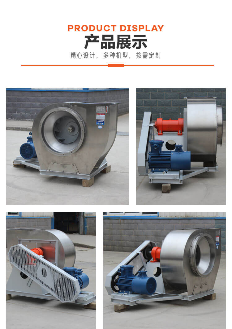 不銹鋼離心風機:主要由不銹鋼材質制成,具有抗腐蝕、耐高溫、美觀易清潔等特點。不銹鋼離心風機適用于一些對材質要求高、要求抗腐蝕性能好的場合。