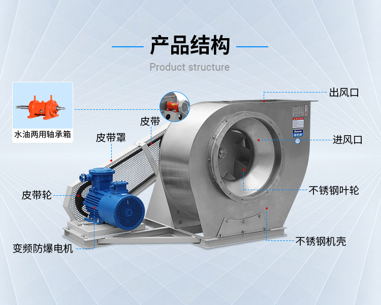 不銹鋼離心風機:適用于一般工業和商業場所,如空調通風系統、食品加工廠、醫療衛生等場所。
