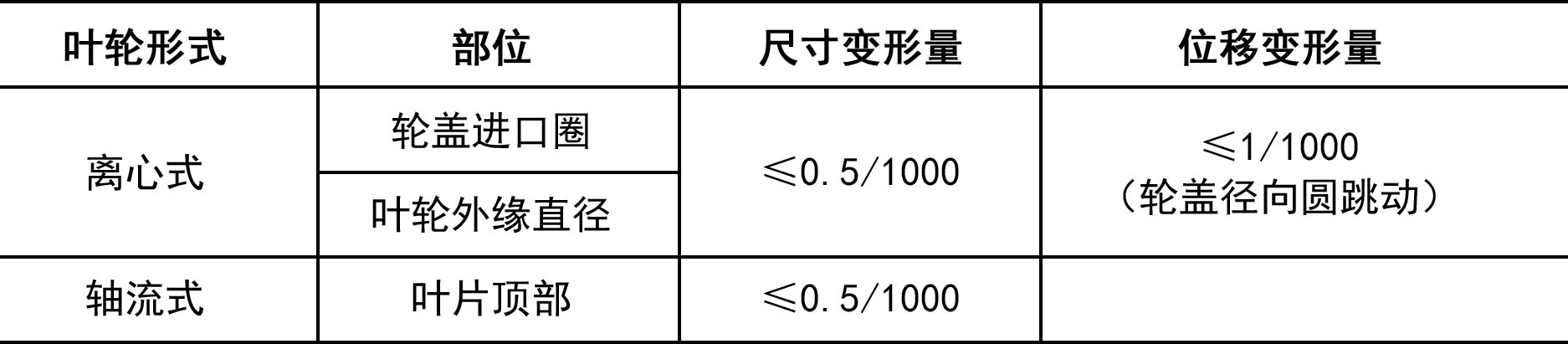 2、試驗后檢查離心風機葉輪焊縫或鉚釘、輪蓋、葉片及葉輪的外形有無裂紋及其他缺陷發生,若有缺陷應消除后再作超速試驗。當鉚釘松動個數少于5%時,修復后可不再作超速試驗。