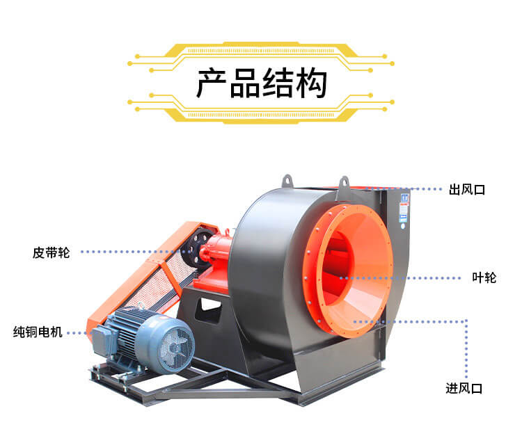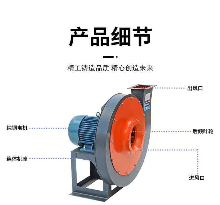 離心通風機的主要部件包括葉輪、外殼、驅動裝置等,通過旋轉的葉輪產生離心力,將空氣從進氣口吸入、加速后排出。