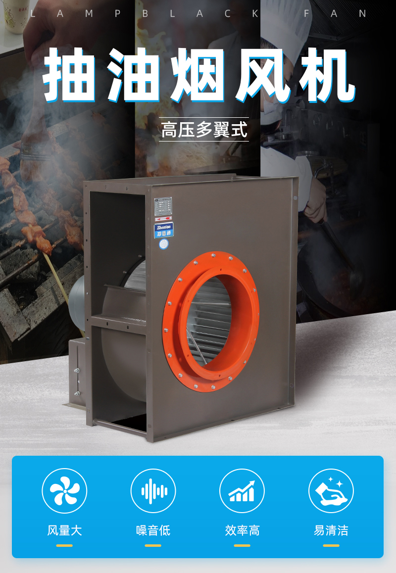 在餐廳廚房風機的選擇上,離心式風機是絕大多數餐飲廚房的選擇,因為單級離心式風機提供的風壓相對較大,