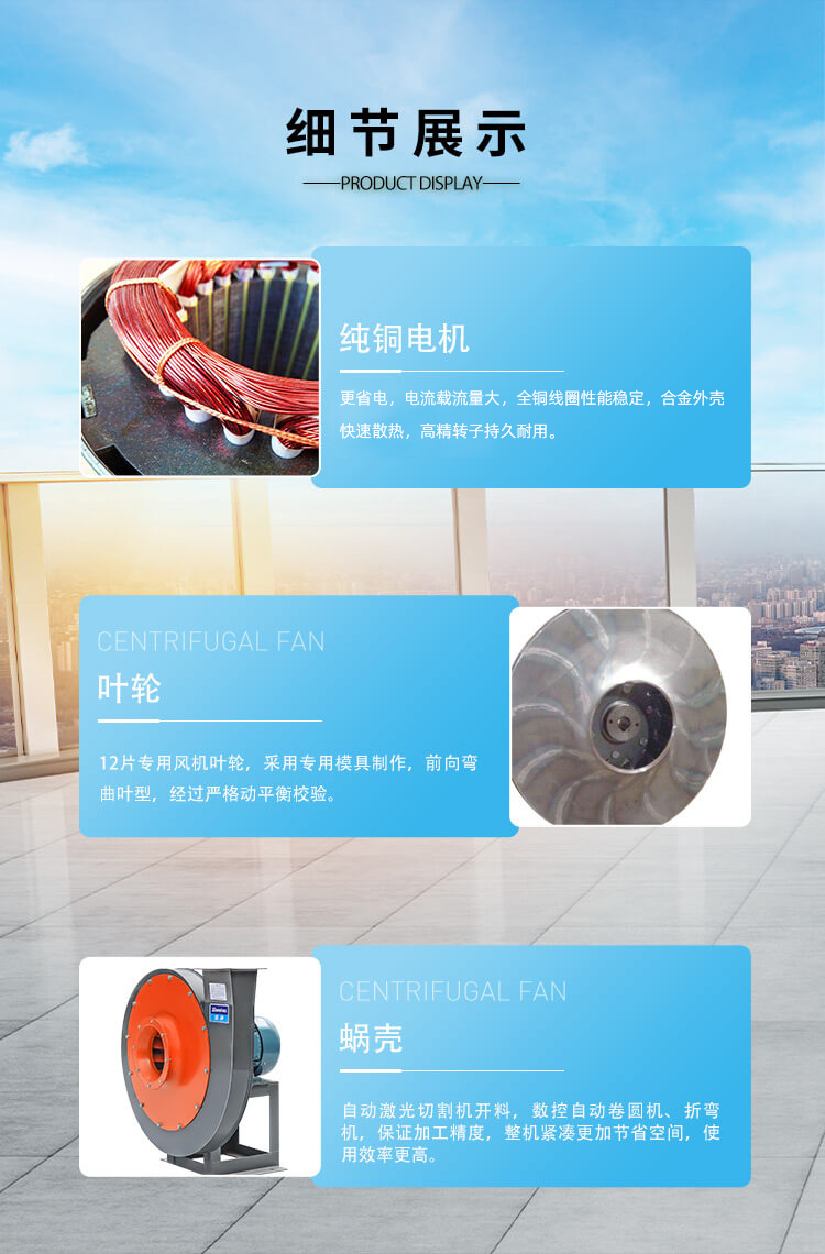 長期穩定運行:離心通風機設計合理,結構穩定,能夠長時間穩定運行,不易出現故障,減少維修和更換成本。