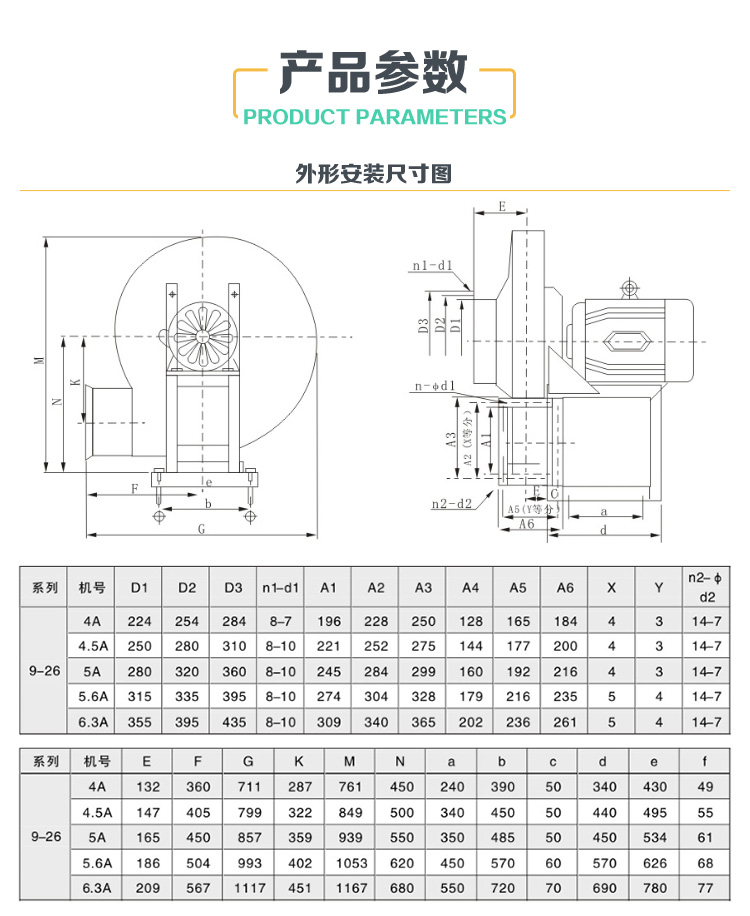 9-26型高壓離心通風(fēng)機(jī)一般用于鍛冶爐及高壓強(qiáng)制通風(fēng), 并可廣泛用于輸送物料,以及輸送不自燃、不含黏性物質(zhì)之氣 體。介質(zhì)中所含塵土及硬質(zhì)顆粒不大于150mg/m3。主要由葉 輪、機(jī)殼、進(jìn)風(fēng)口、傳動(dòng)部分組成。
