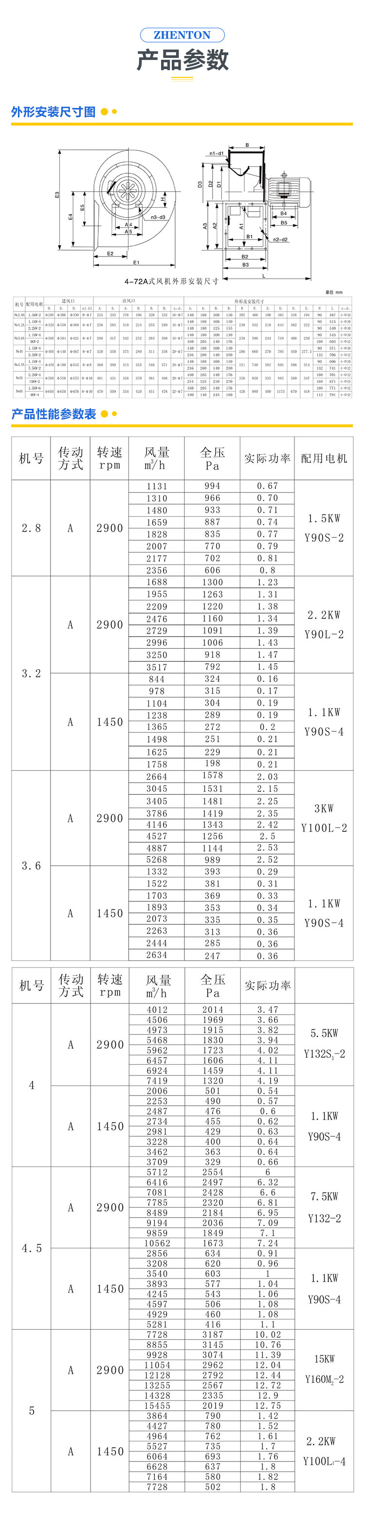 4-72型離心通風(fēng)機(jī)可作為一-般工廠及大型建筑物的室內(nèi)通風(fēng)換氣用,輸送空氣 和其它不自燃的、對人體無害的、對鋼材無腐蝕性的氣體。氣體內(nèi)不允許含有黏性 物質(zhì),所含塵土及硬質(zhì)顆粒物不大于150mg/m3。氣體溫度不得超過80°C。F4-72 型風(fēng)機(jī)采用不銹鋼、玻璃鋼、PP料等材質(zhì),用于輸送腐蝕性氣體,其性能及地基 尺寸與4-72型相同。