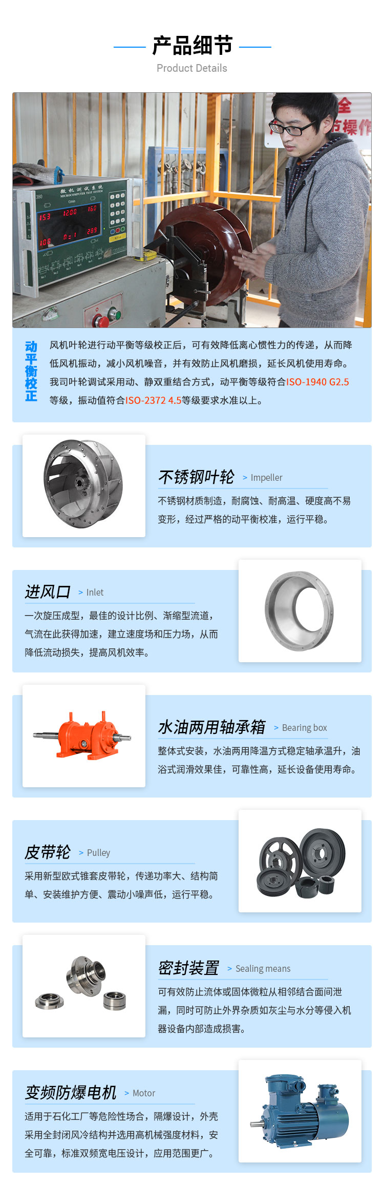 外殼及風(fēng)輪采用不銹鋼風(fēng)機(jī)材質(zhì)焊接而成,耐高溫,能有效防酸堿、防腐蝕。