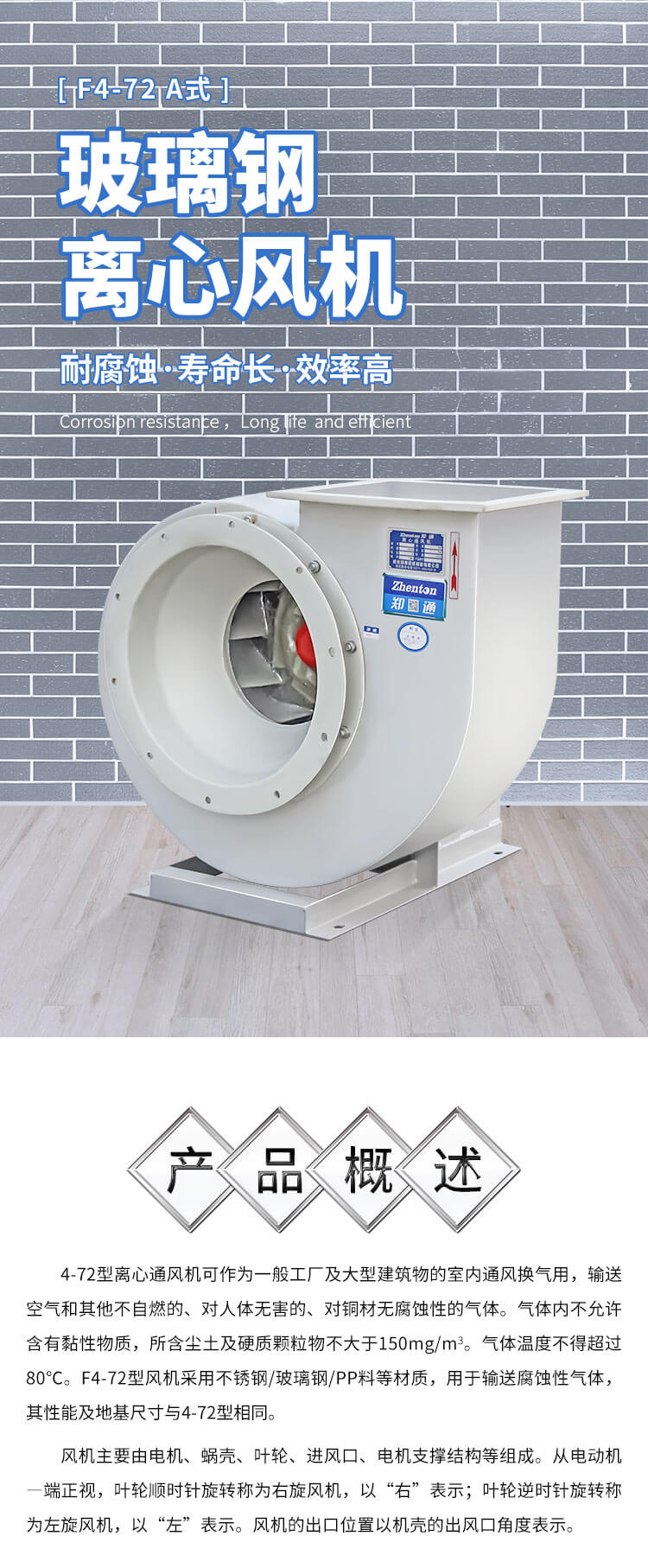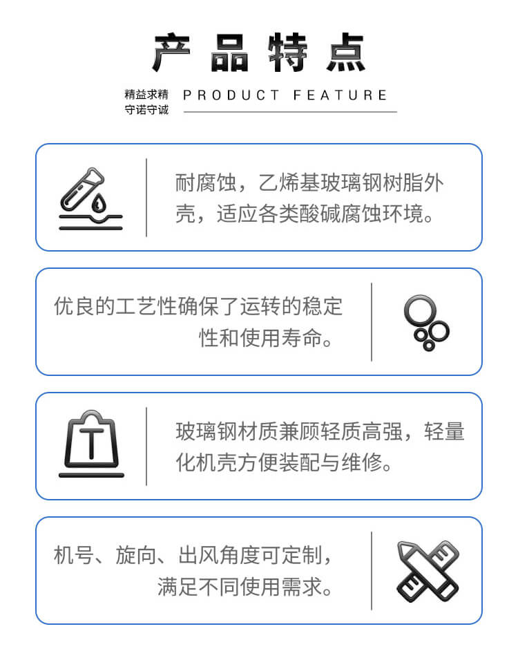 適用于化工、紡織、電鍍、實驗室等場所排送含有一定濃度的酸、堿、鹽等腐蝕性氣體,也可以作為一般工廠的建筑物通風(fēng)換氣用