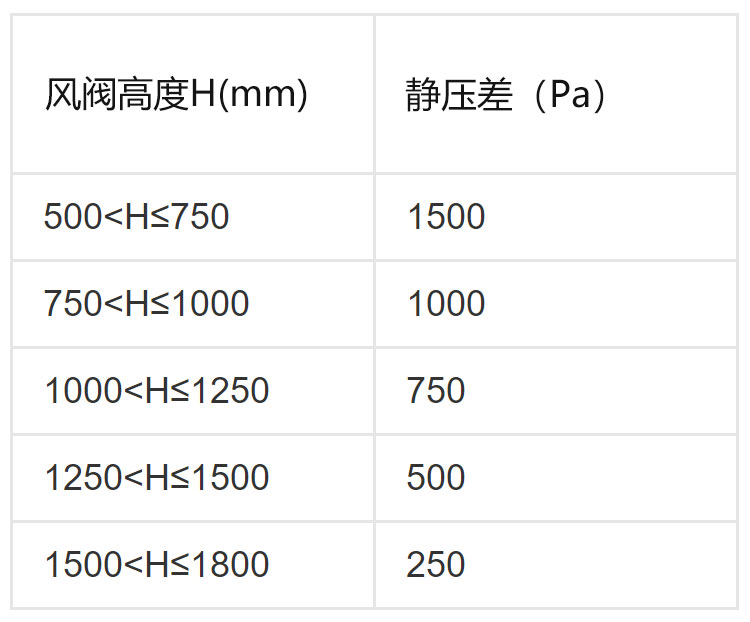 7、選配時必須注意工作溫度和工作壓差的校核,風閥高度對應于兩側的允許最大靜壓差如圖所示(產品參數圖)。
