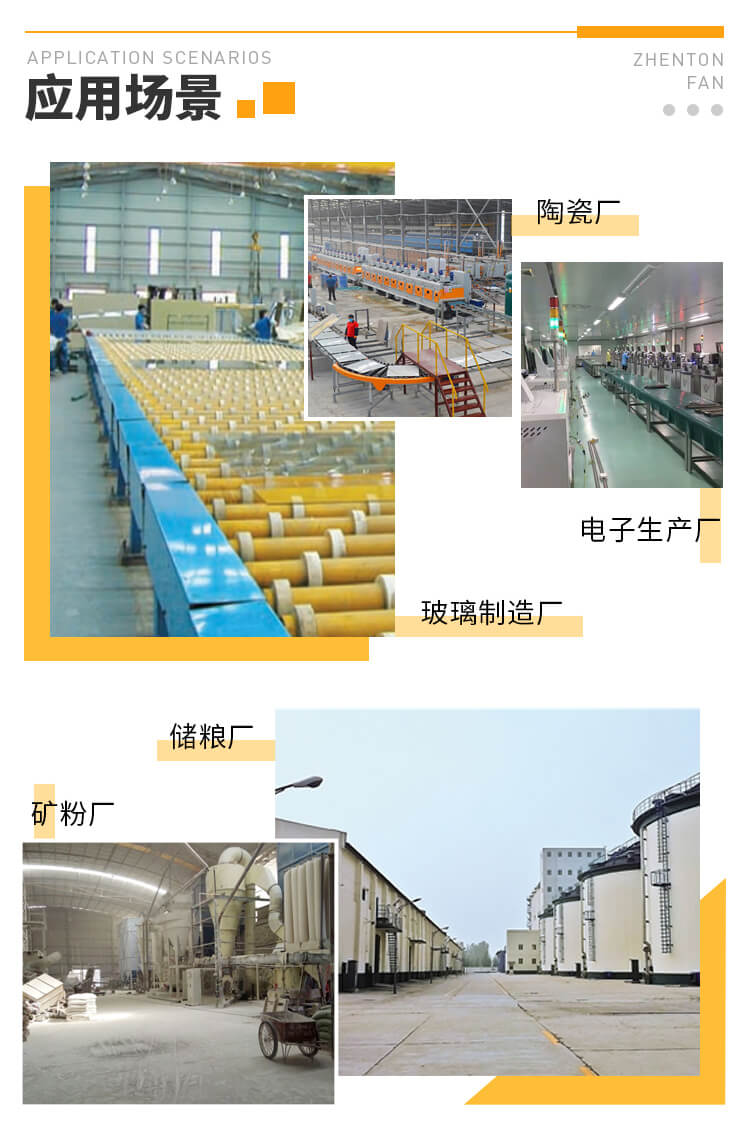 一般適用于鍛冶廠、、玻璃廠、, 陶瓷廠、無線電廠等高壓強制通風及糧食廠、飼料廠、礦粉廠、沙場等加工行業的物料輸送。