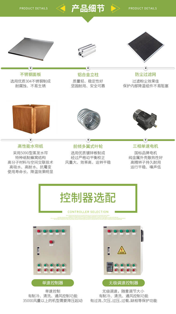 水冷空調(diào)是很多工廠、車間、畜牧養(yǎng)殖夏季降溫中常用且暢銷的一款產(chǎn)品, 外殼采用304不銹鋼材質(zhì)經(jīng)精密激光切割和數(shù)控折彎成型, 內(nèi)部離心風(fēng)機(jī)使用皮帶傳動(dòng)式雙進(jìn)風(fēng)設(shè)計(jì)、前傾多翼式葉輪,風(fēng)量大、效率高、噪聲低、安裝方便,降溫幅度可達(dá)4°C~12°C。