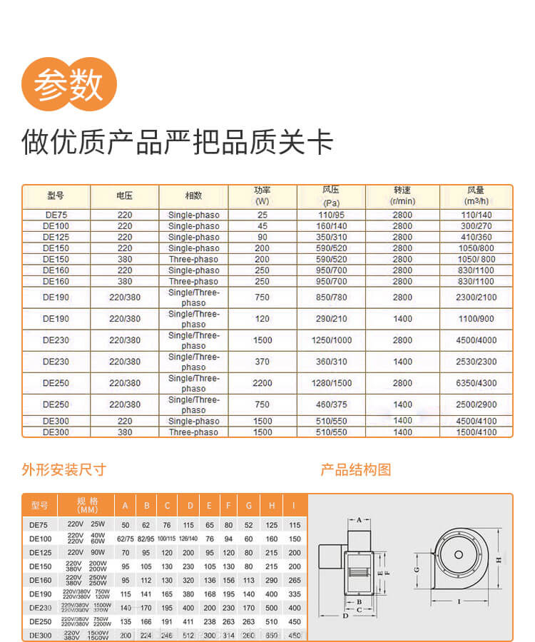 體積小、重量輕、風量大、風壓強、噪音低、運轉平穩、結構牢固、安裝方便。
