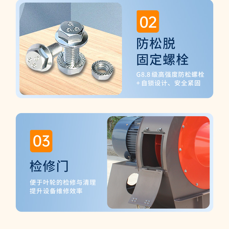 FC6-48物料輸送離心風(fēng)機(jī)系列,糧食加工中輸送谷物、面粉,建材行業(yè)輸送水泥粉、石灰粉,化工領(lǐng)域輸送非腐蝕性顆粒原料,以及飼料廠輸送飼料粉、塑料廠輸送塑料顆粒等場(chǎng)景的物料輸送。整體采用加厚碳鋼蝸殼、圓弧形專用葉輪、純銅電機(jī)設(shè)計(jì)。質(zhì)量可靠,耐磨性能強(qiáng)噴塑烤漆工藝,不掉漆,不生銹,用個(gè)十年八年沒問題。