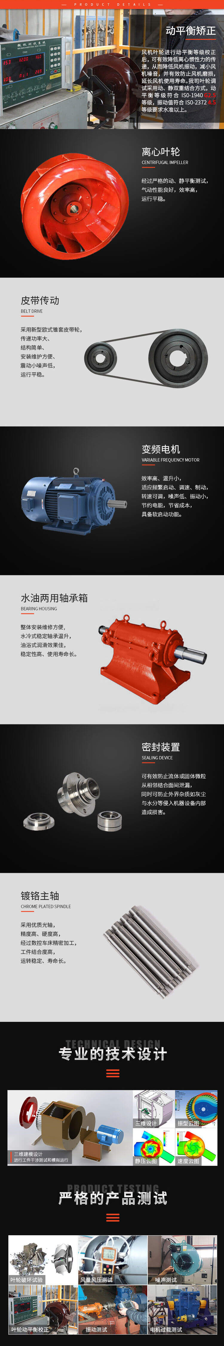 C式傳動部分是由主軸、軸承箱、滾動軸承、帶輪組成,具有良好的氣動性能,運轉平穩、振動小、效率高、壽命長。