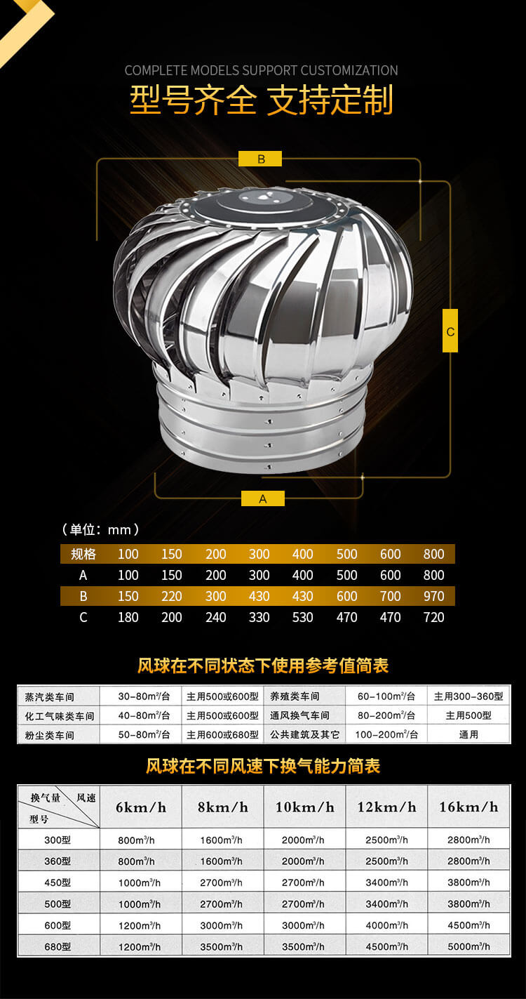 不銹鋼無動力風球適用于工廠、車間、廚房、餐廳、倉庫、醫院等的通風換氣。