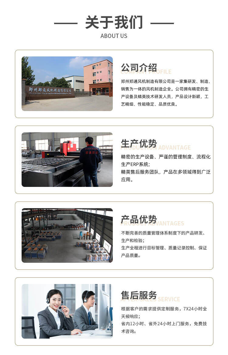 鄭州鄭通風機制造有限公司是一家集研發、制造、銷售為一體的風機專業制造企業。公司擁有精密的生產設備及專業的技術研發人員,產品設計新穎、工藝精細、性能穩定、品質優良。