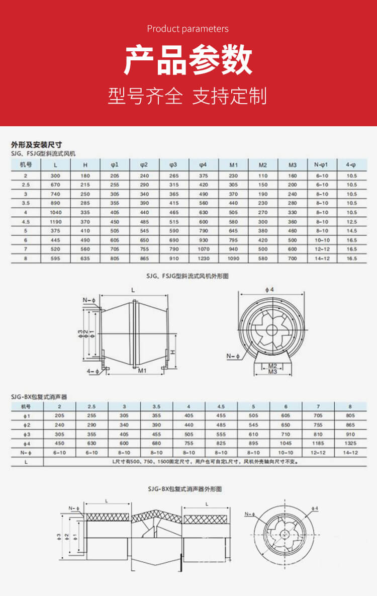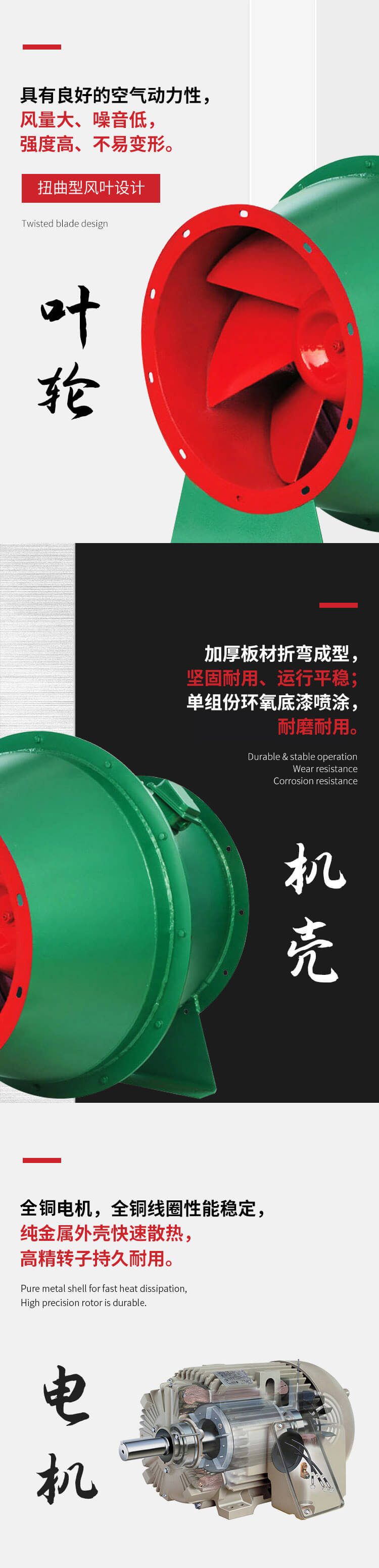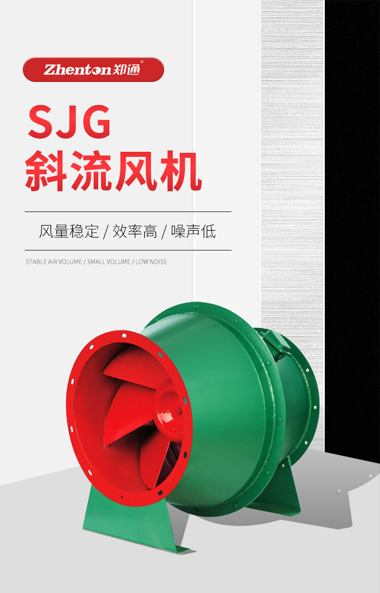 SJG斜流風機廣泛應用于工業及民用建筑等各種通風換氣場所,特別使用于通風與空調管道的加壓、送風和排風